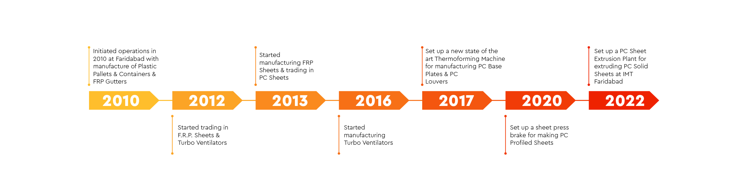 In the Year 2022, as a part of our overall expansion strategy, we integrated backwards to set up a large state of the art Polycarbonate (PC) Sheet Extrusion Facility at Faridabad with an installed capacity of 3600 metric tons.