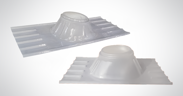 They can be provided with a conical venture dome or a cylindrical-shaped neck at the center for mounting the ventilation equipment. A Poly-Soaker Plate with a conical dome is used for fixing wind-driven Auto-Rotators. The conical shape assists in draft formation, which improves the operational efficiency and performance of the Auto-Rotators. The venture dome and the cylindrical neck are provided with a differential height at corresponding points to help keep the ventilation equipment upright over the roof and perpendicular to the ground.